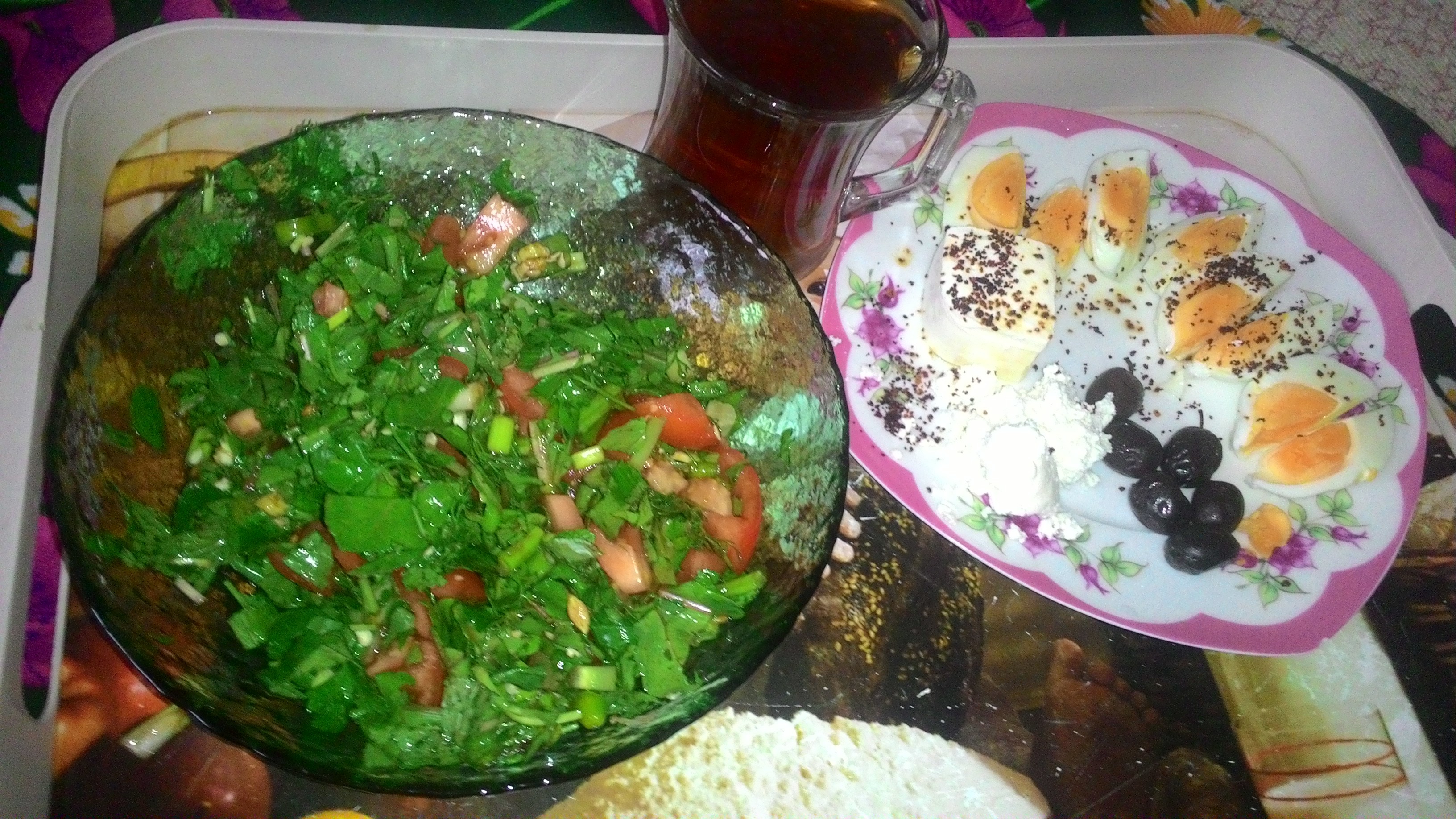 2yumurtali kıyma peynir zeytin yeşillik ıhlamur( hastaneden gelince aciktik hazır yemekte olmayınca böyle oldu kaptanim)