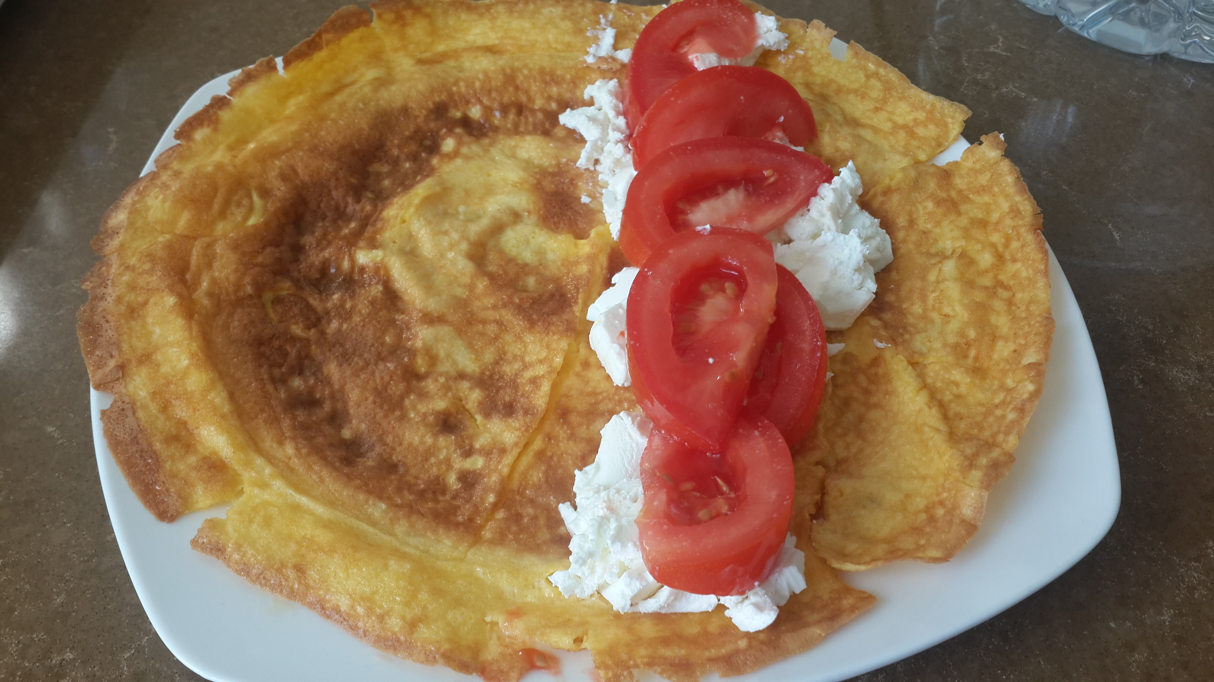 Çırpılmış 2 yumurta 1 tatlı kaşığı un yarım çay bardğı süt tereyağda pişirilmiş.