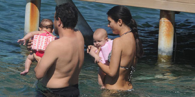 Tatillerinin ilk günü olmasına rağmen görüntülendiklerinden habersiz bir şekilde bebekleri ile denizin tadını çıkaran ikiliyi görenler ise meraklı bakışlar altında çifti izledi. Çocuklarına giydirdikleri can yelekleri ile kendilerini suya atan ünlü çift, 5 dakika süren deniz sefalarının ardından bebeklerini havluya sarıp dinlenmeye geçti. Bebeklerden esmer olan Toprak'ın saçlarının gür, kumral olan Maya'nın ise saçlarının çok kısa olması dikkat çekti.