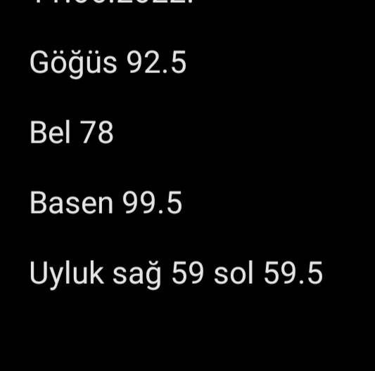 Ben spordan gelip pump olduğum için ölçemedim. Yarın ölçücemTamam canım ekleyecegim
