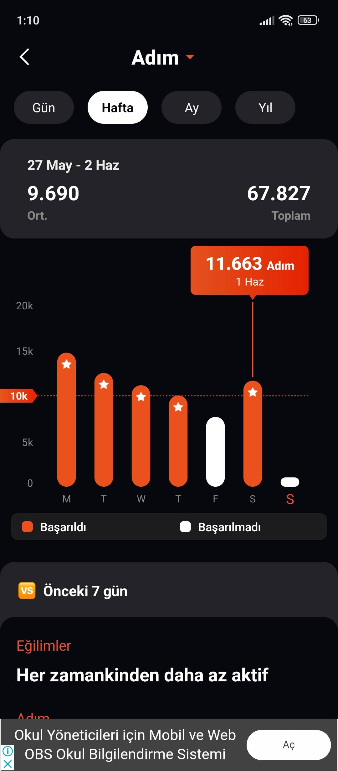 uygulamayı sonradan açtığım ilk 10 15 dklik adımlar sayılmadı için 7000 dedim